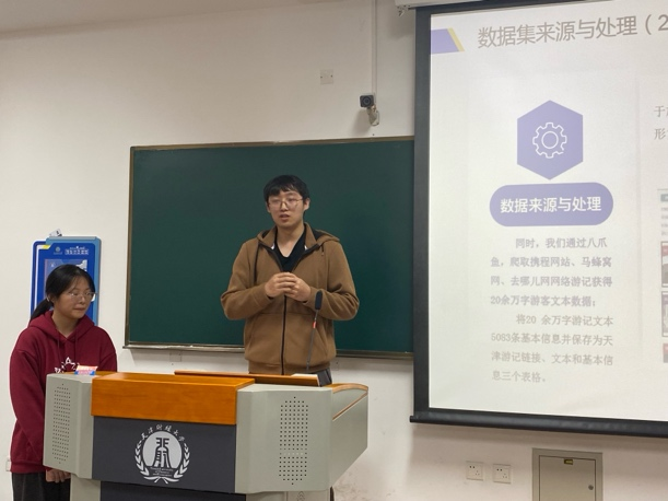本届“数客杯”海鳗赛题的获奖团队成员针对各自作品《基于天津市游客行为特征分析及应用》与《天津特色旅游线路产品规划与营销策略研究》进行了精彩汇报,展现了他们对旅游行业的深刻洞察。团队借助大数据技术深入剖析游客行为,为产品创新提供了数据支撑,并推出了创新的旅游线路设计与营销策略,体现了团队的专业能力。