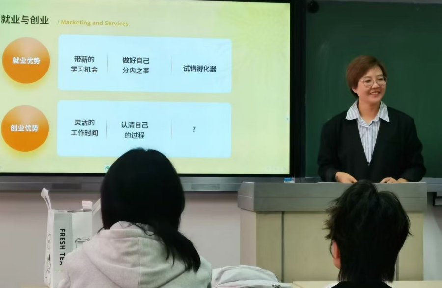 们带来了一场关于烘焙连锁服务业的精彩讲座。她首先描绘了行业的当前动态和未来趋势,通过案例分析深入探讨了市场营销的核心本质以及服务营销中的关键营销模式;分享了在职场和创业中取得成功的秘诀——在职场上,持续自我学习、提升专业技能和职业素养;在创业中,保持理性思考、勇敢面对挑战,并不断提升前瞻性思维与战略洞察力。同学们针对营销专业的未来就业方向、人才需求趋势分析和在校期间的能力养成等方面的问题踊跃提问。任总对同学们的问题从自我成长的目标定位、学习习惯建立和专业技能培养等方面进行了深入解答,启发了大家对营销专业人才成长和未来职业规划的深入思考。