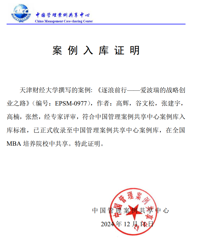 近日,企业管理系高楠、高辉两位老师团队在与天津爱波瑞科技发展有限公司合作开展产教融合研究生工作站建设的过程中,以爱波瑞公司为研究对象所开发的《爱波瑞的数字精益之旅:何去何从》与《逐浪前行——爱波瑞的战略创业之路》两个教学案例,经中国管理案例共享中心严格评审后成功入库。此次两个教学案例的入选标志着海角社区
