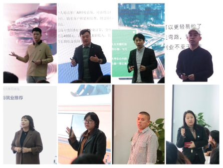 在路演环节中,来自不同行业的八位企业家为大家带来了陶瓷、财税、美妆、达人、茶饮、民宿、副食、医疗八个行业的创新创业项目案例展示,详细介绍了项目背景、创新点、市场前景、团队优势等关键信息,并对各自行业的市场做出了深刻剖析,让同学们感受到了真实的市场情况,突破了行业认知局限,启发了同学们的创新思维。