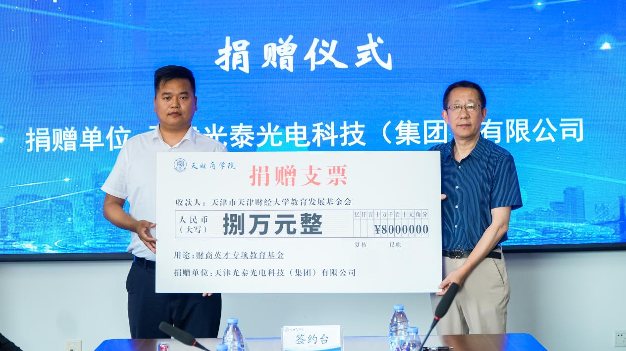 教育发展基金会理事长、财务处处长王健与天津光泰光电科技(集团)有限公司董事长饶古清签订《海角社区