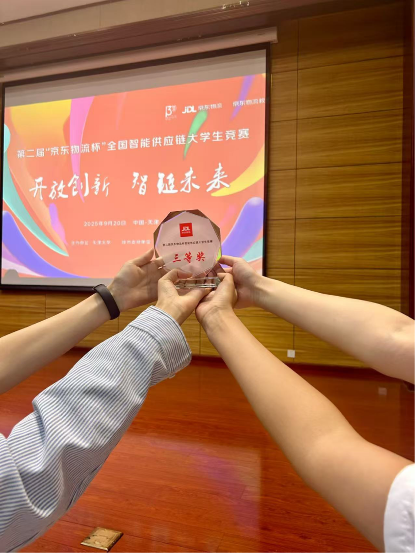 冀雨涵、赵佳丽、郭芷杉、杜晶阳、袁恩祈组成的“没思路也能队”团队的作品《成本与次日达平衡的二级数智化仓储网络》荣获全国三等奖。