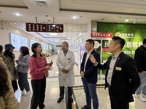 提供的宝贵学习机会表示感谢。他指出,随着“健康中国”战略深入推进,国民的健康需求日益增长,健康产业正迎来前所未有的发展机遇。作为未来的商业领袖,MBA学员不仅要懂管理、精财务,更要具备前瞻性的产业视野和人文关怀精神。他希望同学们带着问题参观,认真思考和分析民众体检的运营流程、商业模式与核心竞争优势,并通过此次移动课堂,将健康管理的理念融入未来的企业管理实践,为企业与员工的共同发展注入新的活力。