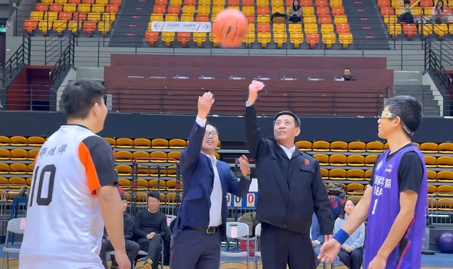 刘玉斌和张洪涛共同为揭幕战开球。篮球被高高抛起,现场气氛随之热烈,本次赛事正式开启。