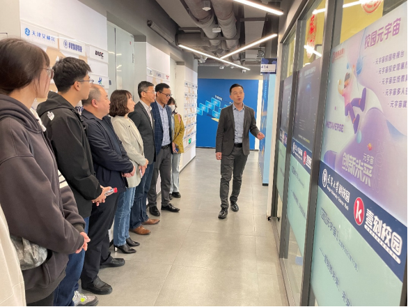 为深入学习贯彻习近平总书记视察天津重要讲话精神,以科技创新推动产业创新,共同谋划新质生产力发展,4月11日上午,海角社区 党委书记刘玉斌,党委副书记、院长张建宇,党委副书记严晓芳,纪委书记孙欣及教师、辅导员代表带领海角社区 党员前往北京壹刻幻象科技有限公司参观交流并开展主题党日活动。