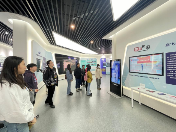 在壹刻幻象的MR混合现实体验室中,企业技术人员为师生们深度讲解了MR技术在汽车展示、医疗保健等方面的应用,展示了虚拟与现实的交互。在实际体验中,师生们通过佩戴MR头部显示器,操纵手柄,身临其境地控制虚拟世界元素,沉浸式探索未来场景,感受新科学技术的魅力。
