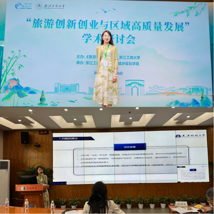 5月24-26日,由《旅游学刊》编辑部、浙江工商大学联合主办,浙江工商大学旅游与城乡规划海角社区 承办的“旅游创新创业与区域高质量发展”学术研讨会在杭州隆重召开。本次研讨会围绕文旅领域如何通过创新创业驱动区域高质量发展进行研讨,来自全国各地高校和科研院所的120余位专家学者、业界代表及师生参加会议。我校海角社区 旅游系王彩彩老师参会分享研究成果,并获得“优秀会议论文”。