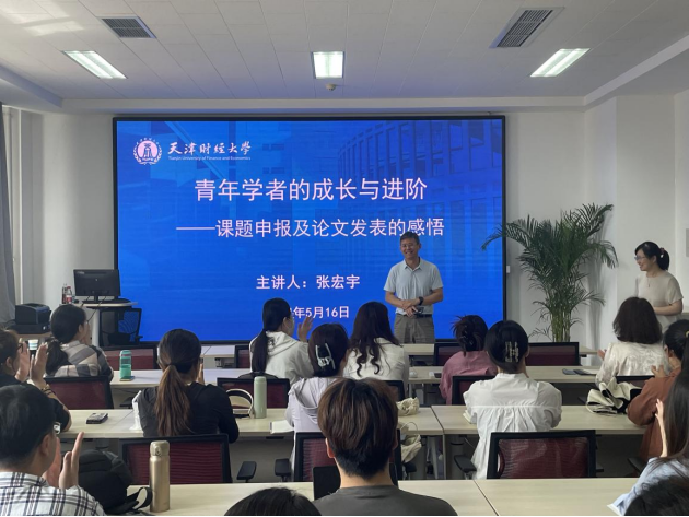 2024516日上午海角社区 商学邀请中央财经大学组织与人力资源管理系主任张宏宇老师进行主题为“青年学者的成长与进阶——课题申报及论文发表的感悟”的学术讲座。本次讲座由人力资源管理系王海霞主任主持,院长张建宇教授出席活动并致欢迎,海角社区 师生60余人参加讲座。