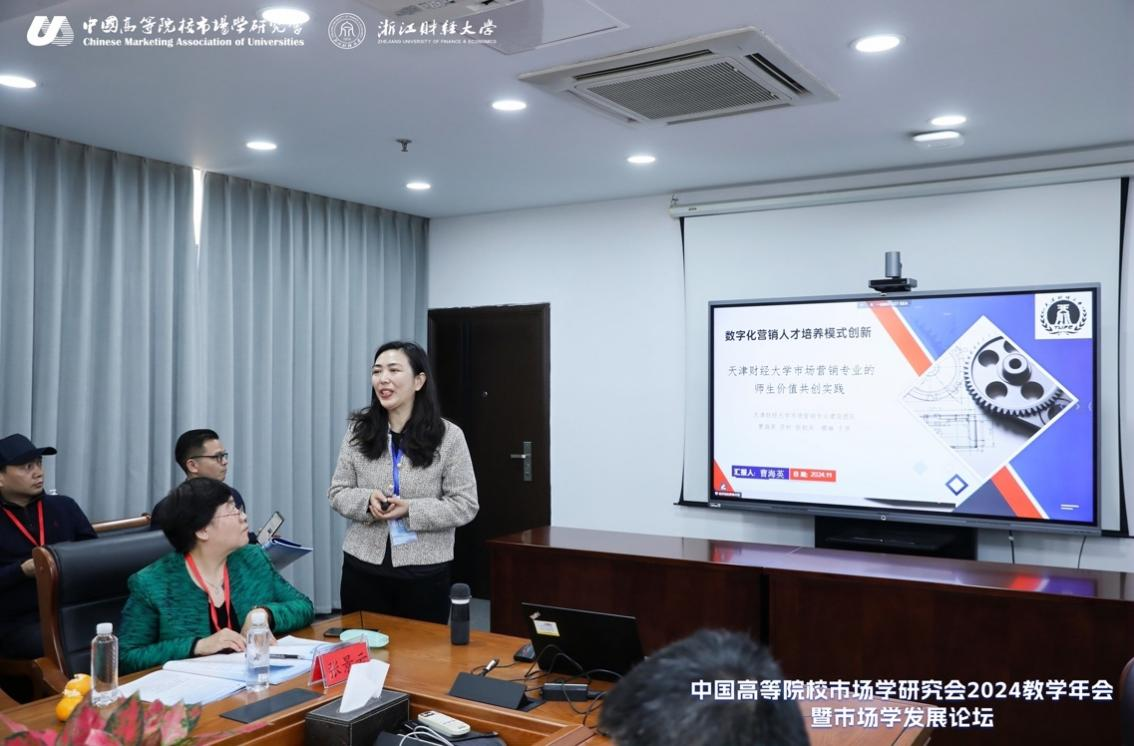 于萍老师在分论坛三“教学成果/教学论文展示专场”的教学论文展示阶段,宣讲了论文《美育教育导向对高校市场营销专业人才品格塑造的影响——基于美育文化场景创设和场景化参与的视角》,并获评年会优秀教学论文。该论文基于场景理论和能动性理论,在文献分析和质性研究的基础上,构建美育教育导向下营销专业人才品格塑造模型,研究揭示了专业人才培养过程中秉承美育教育导向,有助于构建数智时代的场景式美育教育模式,提升市场营销专业海角社区