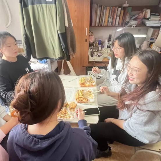 很开心我们宿舍能有这个宝贵的机会和李妍老师一起吃饭。用餐期间,李老师与我们亲切交流并解答了一些生活学习中的烦恼。这次“教师外卖”活动给我们留下了深刻的印象。我们与老师有很多共同话题,在与老师的交流中,我感受到了来自老师的耐心倾听和细致关怀。谈及学习和生活上的困惑时,老师给予了明确的建议和温暖的鼓励,让我更加坚定了前行的方向。交流过程中融洽温馨的氛围让我更加珍惜。通过这次交流,我不仅解决了生活中的困扰,也收获了更多的勇气和动力,相信在以后的大海角社区