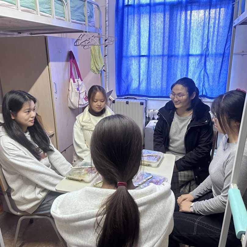 11月8日,企业管理系王春艳老师携带美食来到优秀宿舍1-C-105,与同学们共进午餐。在用餐过程中,老师与同学们交流融洽,气氛温馨。王老师和蔼可亲,关心同学们的学习生活,询问同学们初到大学的感受,像朋友一样提供建议,帮助同学们更好地融入大海角社区