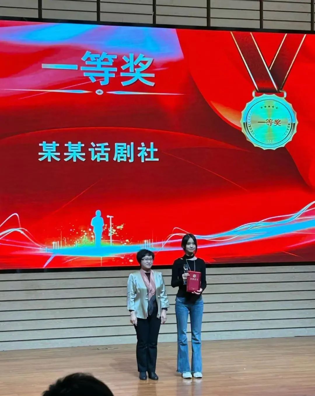 某某话剧社出演的经典话剧《雷雨》取得大赛一等奖的好成绩!